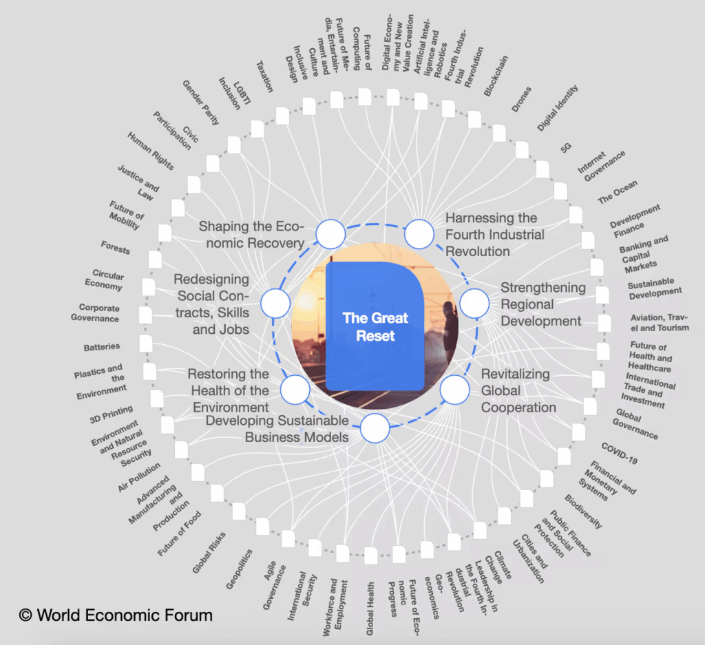 A Világgazdasági Fórum alapító elnöke, Klaus Scwab így nyilatkozott már 2020 nyarán: “A járvány egy ritkán előforduló, szűk időablakkal bíró lehetőséget nyitott nekünk arra, hogy a világunkra reflektáljunk, újraképzeljük és újraindítsuk [működését a lezárások után].2