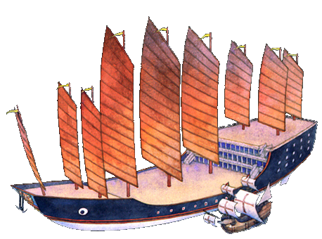 Cseng Ho hajója és Kolumbusz hajója egymás mellett