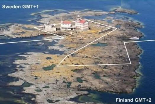 Az egykori egyenes osztatú határ ellenben meglehetősen furcsára módosult 1985 óta, ugyanis a finnek építettek a szigetre egy világítótornyot még 1885-ben… és mivel az akkori időkben még nem volt GPS, véletlenül a sziget svéd oldalára húzták azt fel. A hibát kereken 100 évvel később úgy javították, hogy a svéd területet “finnesítették”, és a finn oldalról pedig egy pontosan ugyanakkora területet adták át Svédországnak, így a szigetre belépő egyenes határvonal megmaradt, a halászati jogok nem módosultak.