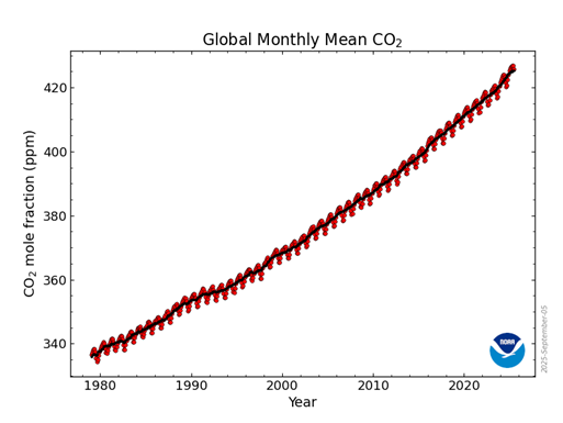 A légköri széndioxid-koncentráció szintjét mérő Keeling-körbe. Kép forrása: https://gml.noaa.gov/ccgg/trends/global.html